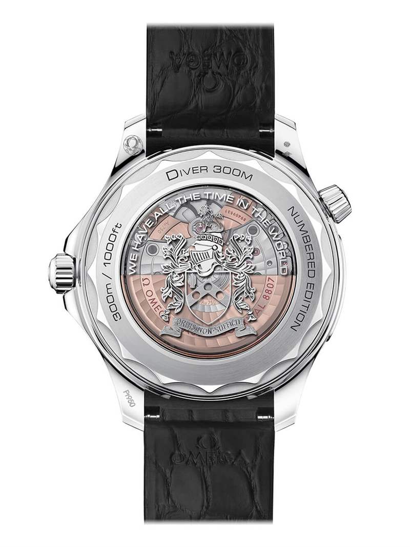 將手表翻轉(zhuǎn)過(guò)來(lái),您會(huì)發(fā)現(xiàn)最后的繁華——邦德的盾徽,在藍(lán)寶石底蓋上鐫刻和鍍金。您幾乎可以通過(guò)它看到令人印象深刻的歐米茄同軸至臻天文臺(tái)機(jī)芯 8807。