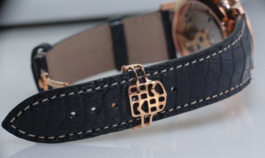 42 毫米寬,可以說 Slimline Moonphase 佩戴起來很大(我認為這是一件好事),因為它的邊框相當纖細。然而,更保守的凸耳間距允許它以傳統方式佩戴。因此,總而言之,它與堅固的“42 毫米寬”外觀相得益彰。我不會將 Slimline Moonphase 稱為“超薄”,因為它不是。表殼厚度為 11.3 毫米,但恰好戴在手腕上很低。部分原因是表殼采用碗狀設計,中間較厚但邊緣較薄。