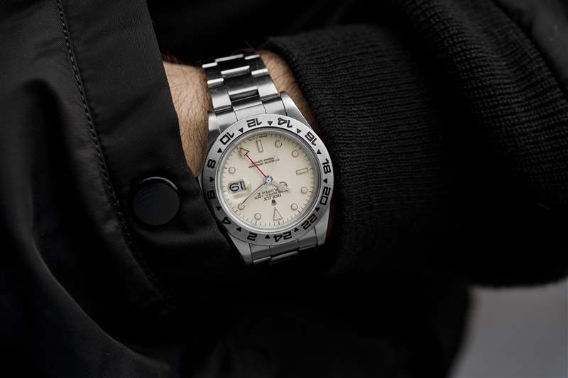 現(xiàn)在,回到這組優(yōu)秀的古董手表。查看上面的幻燈片或前往商店查看本周的全部掉落。否則,請繼續(xù)閱讀團(tuán)隊(duì)從 2022 年第一批年份精選中挑選的商品。Saori 帶我們離開了勞力士的驚人“缺陷”,即 ref。帶有米色“軌道”表盤的 16550 Explorer II,Rich 帶來實(shí)用至上的 Aquastar,Sean 用 80 年代的 Heuer Yacht Timer 回憶起他在高中帆船隊(duì)的日子。1984 勞力士 Explorer II Ref.?16550 配奶油色“Rail”表盤大村紗織
