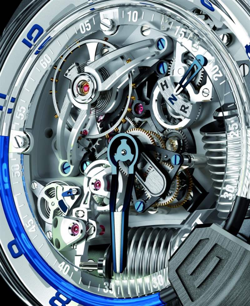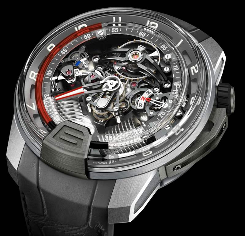 H2 機芯外觀精美,其復雜的三維結(jié)構(gòu)和表盤上的可見特征,包括平衡輪和大部分齒輪系。表盤還具有動力儲存指示器和表冠功能指示器(手動上弦、中性或時間設置)。它也恰好有一個溫度指示器。與 H1 相比,H2 是一款更獨特、更高端的產(chǎn)品,但它也是一件更令人印象深刻的鐘表藝術品。