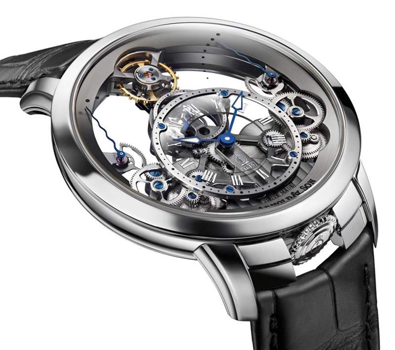 Arnold & Son 在瑞士的 La Joux-Perret 手表制造商生產,這意味著所有機芯都是內部制造的。他們生產了一些非常令人印象深刻且巧妙的機械裝置,這些機械裝置的外觀和操作方式都吸引了鐘表愛好者。時間金字塔內部是 Calibre A&S1615 手動上鏈機芯,厚度僅為 4.4 毫米。它以 21,600 bph 的速度運行,并具有 90 小時的超長動力儲存。