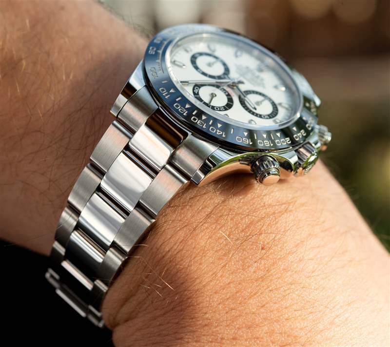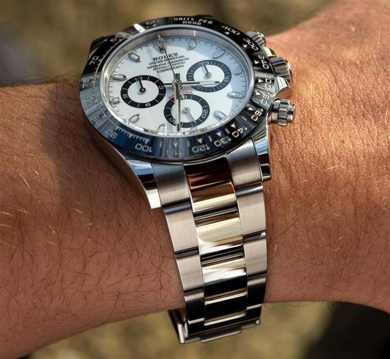 勞力士代托納 (Rolex Daytona) 比大多數(shù)其他鋼手鏈計時手表更舒適。它尚不完美——請繼續(xù)關(guān)注以了解它如何在下面的“較差”部分做得更好——但它不需要完美就可以勝過幾乎所有其他鋼制計時碼表。為何如此?首先,大多數(shù)鋼制計時碼表的門檻并沒有設(shè)置得很高;它們可能又重又厚又笨拙,通常搭配普通的表帶或表鏈,這些表帶或表鏈的設(shè)計并不適合手表的體積。勞力士代托納 (Rolex Daytona) 是當(dāng)今生產(chǎn)的最薄的自動上鏈計時手表之一。它的厚度僅為 12 毫米,比大多數(shù)潛水表都薄(勞力士潛航者型的厚度為 13 毫米),更不用說計時碼表了。這有助于以各種方式提供舒適感:低調(diào)有助于最大程度地減少晃動,防止手表一直卡在袖子和障礙物上,而且,作為獎勵,它也增加了明顯更精致的美感。其次,116500LN 配備三鏈蠔式表鏈,寬度、重量和集成度都恰到好處,可以舒適地支撐表頭。第三,手鐲和表扣都沒有任何鋒利的邊緣——甚至是表耳的底面。廣告留言廣告信息結(jié)束
