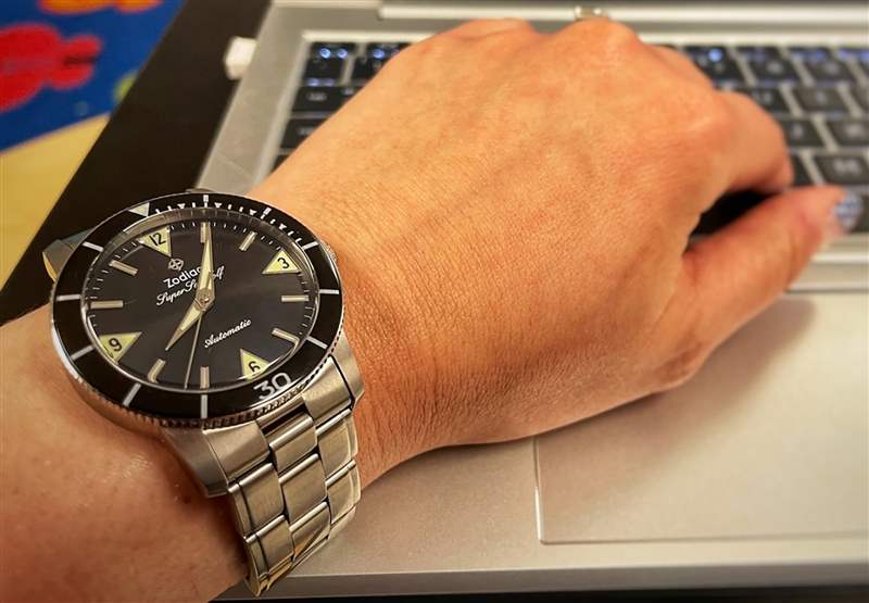與此同時,我送給我妻子和我自己每人一臺 ZO9209。我的妻子出身于一個軍人大家庭,也是一名教師。雖然她喜歡運動手表,但由于她的 6 ? 英寸手腕,她經常難以佩戴它們。ZO9209 不是這種情況。它提供了存在感而不太大,她喜歡表盤設計的平衡。她班上的孩子們喜歡它,她很欣賞這樣一個事實,即它不會像在課堂上查看智能手表或手機那樣分散注意力。她的學生也喜歡學習使用潛水表圈計時器進行活動。廣告留言廣告信息結束