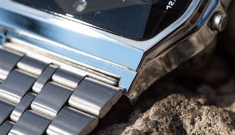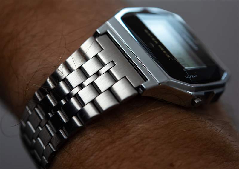 然后是手表本身,這就是樂趣的開始。首先,讓我們澄清一下我們正在看的是什么??ㄎ鳉W A159WAD-1D 尺寸為 36.8 毫米 x 33.2 毫米,厚度僅為 9.7 毫米,重量僅為 45 克或 1.58 盎司。拿起它,顯然是五件式鏈節手鐲發出響亮的嘎嘎聲,不僅在打開的表扣周圍的松散端,甚至在表耳之間。末端鏈節的公差水平如此之大,以至于整個手鏈在彈簧桿上滑動時都會在表耳之間搖晃。盡管嘎嘎聲很便宜,而且勞力士蠔式手鏈的單個鏈節感覺比整個裝置更堅固、更昂貴,但你仍然不會覺得它很快就會分解或從手腕上掉下來。感覺就像一塊已經戴了20-30年的老勞力士。好的一面?和很多寬松的手鐲一樣,這款也很舒服,更貼合手腕的弧度。雖然你的里程數可能會有所不同,但我在穿著過程中沒有遇到拉毛的情況——令人驚訝的消息,事實上,因為我期待很多。戴上手表時可能會瞬間發生,但永遠不會在佩戴時發生。廣告留言廣告信息結束